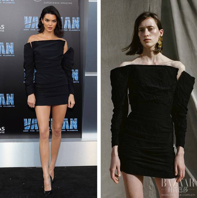 好闺蜜Kendall 到场助阵,这件Carmen March 2017春夏系列露肩裙搭配大长腿,也是大有时髦女特工的样子~