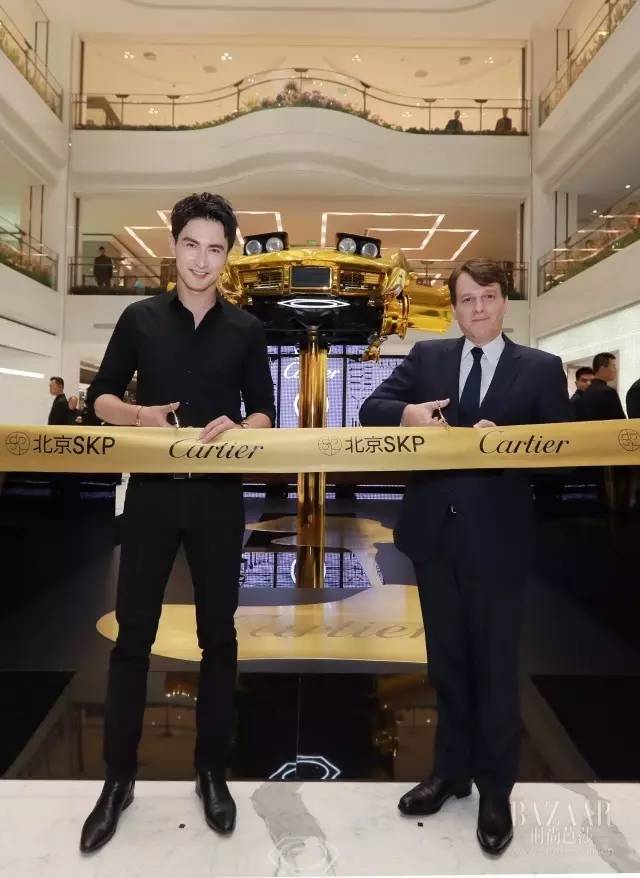 手戴Drive de Cartier系列腕表和卡地亚Justeun Clou系列手镯,高伟光与卡地亚中国区首席执行官李汉龙(Renaud Litré)先生共同揭幕此次设计展。