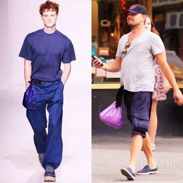 小李子又走在时尚前沿啦~最近出街的一款手袋造型被指花样演绎了Patrik Ervell 2018春夏男装系列的造型。