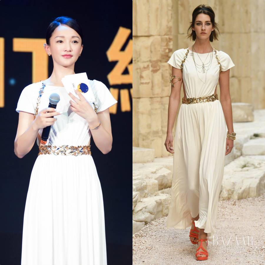 由周迅工作室发起并主办的2017“ONE NIGHT给小孩”关爱智力障碍儿童公益演唱会在北京奥体中心体育馆举行,周迅身穿Chanel 2018早春系列白色礼服现身演唱会。